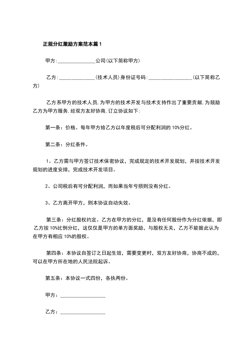 第一条 甲方承诺赠予给乙方的在职分红股(又称为虚拟股份),是指甲方在一定期限内让渡其部分在职分红股给乙方。只要在达到在职分红股赠予或分红条件时,即__________________管理有限公司满足一定条件,且同时乙方工作达到预期时,乙方享有按约定比例分享________________________管理有限公司红利的权利。从本质上讲,分红股激励属于企业股东采用附加条件赠予的方式,在一定期限内让渡部分剩余索取权,而非完整意义上的股权。