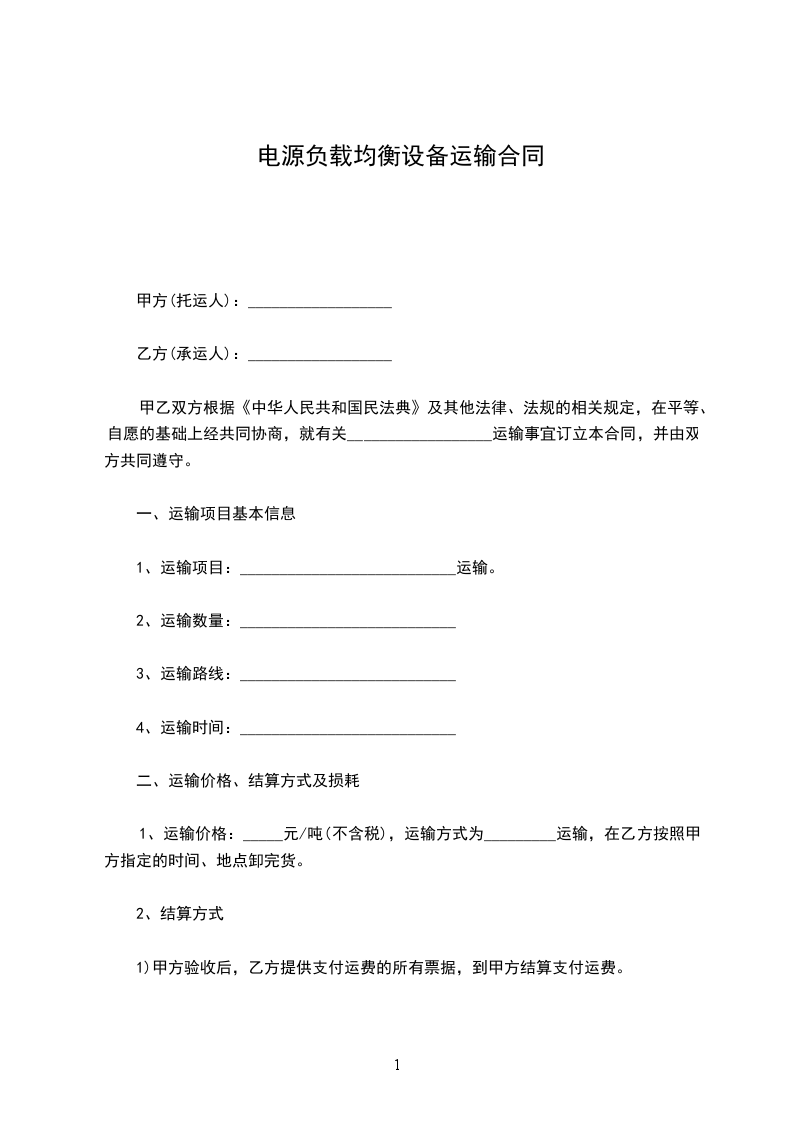 电源负载均衡设备运输合同
