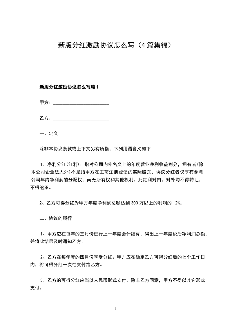 1、乙方团队每年完成既定的目标,甲方承诺给乙方以年度纯利润的 %作为乙方团队的分红,以回报乙方的积极贡献。