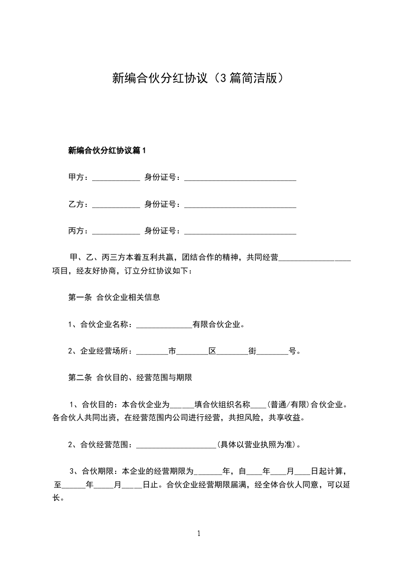 新编合伙分红协议篇1