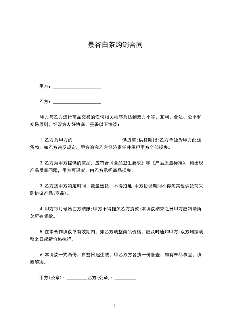 甲方与乙方进行商品交易的任何相关程序为达到双方平等、互利、合法、公平和交易原则,经双方友好协商,签署以下协议: