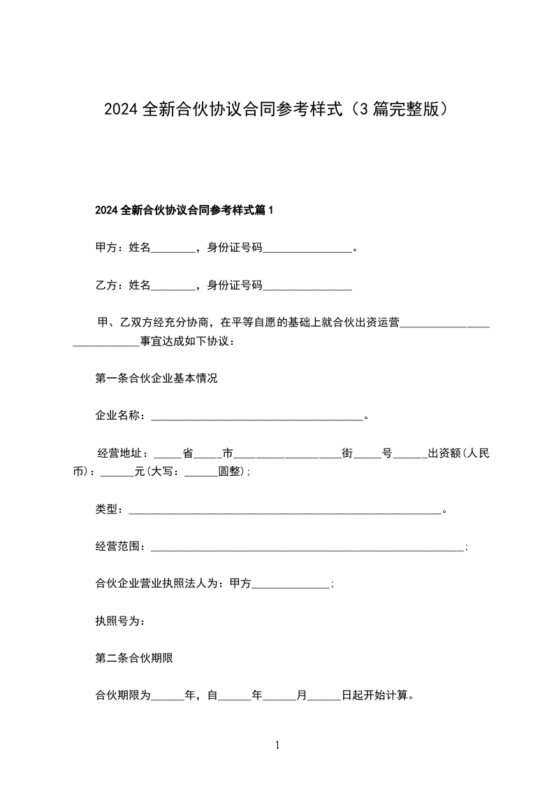 2024全新合伙协议合同参考样式篇1