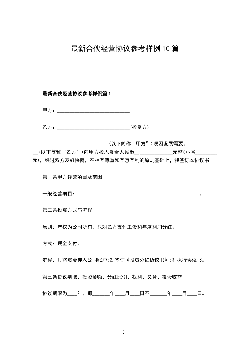 甲、乙双方经平等、自愿友好协商就合伙经营____________有关事宜达成如下协议: