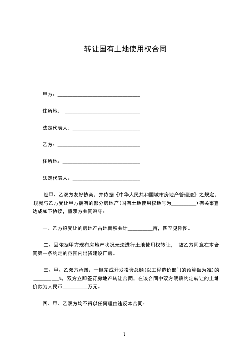 三、转让价格转让的土地承包经营权的转让金为_____________元人民币.甲方承包经营相关地块时对该地块实际投入资金和人力改造的,可收取合理的补偿金.本合同的补偿金为_____________元(没有补偿金时可填写为零元).两项合计总金额为_____________元人民币.