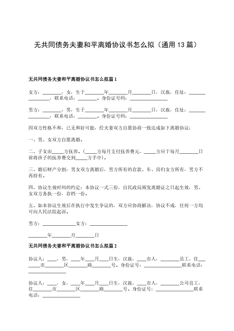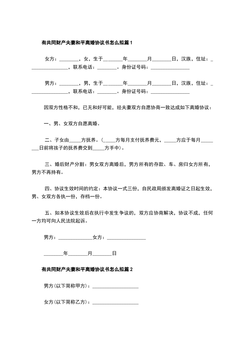 有共同财产夫妻和平协议离婚书怎么拟篇13