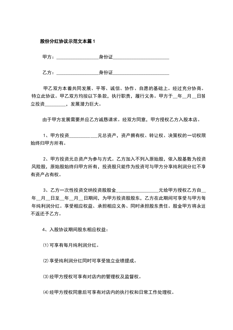 股份分红协议示范文本篇1