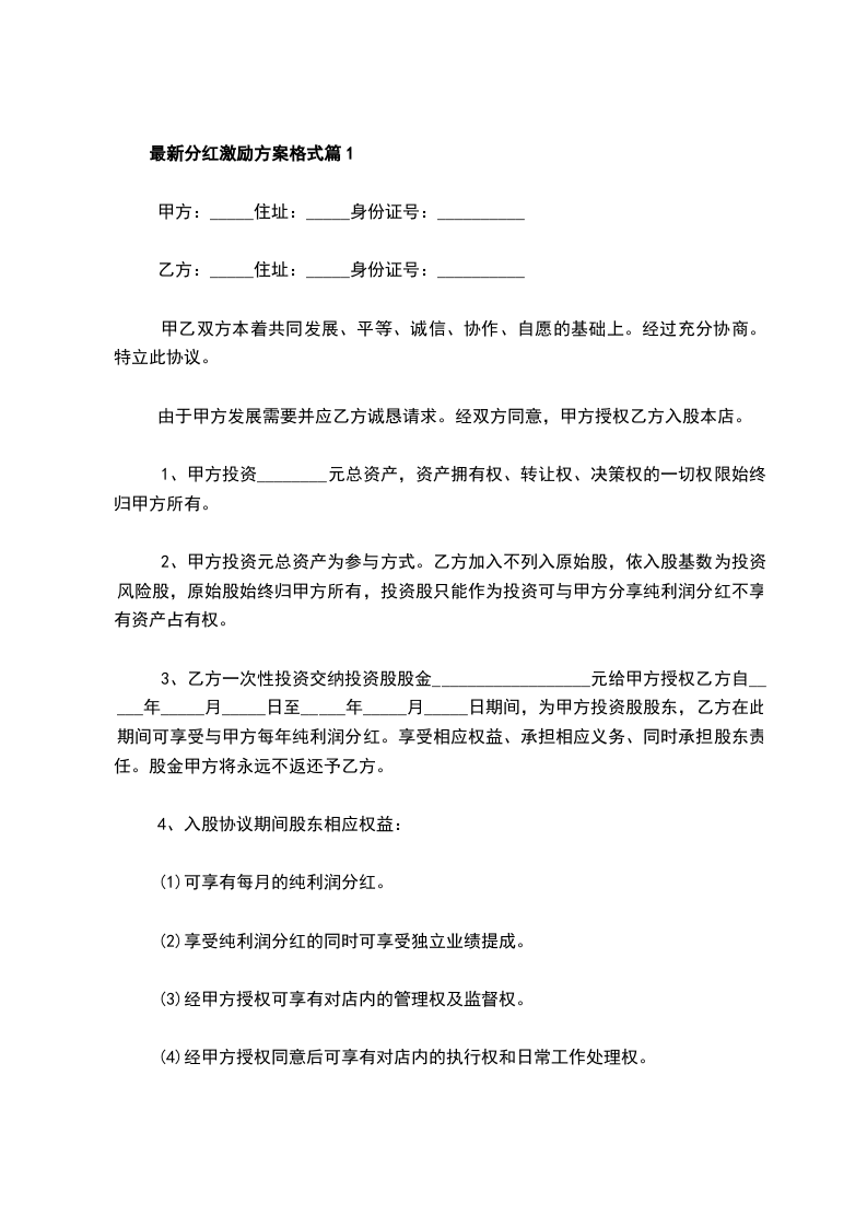 2、乙方所得红利比例为___%(以___税后可分配利润___为基准),通过___方式支付,并视公司的发展以书面形式每______年调整一次;