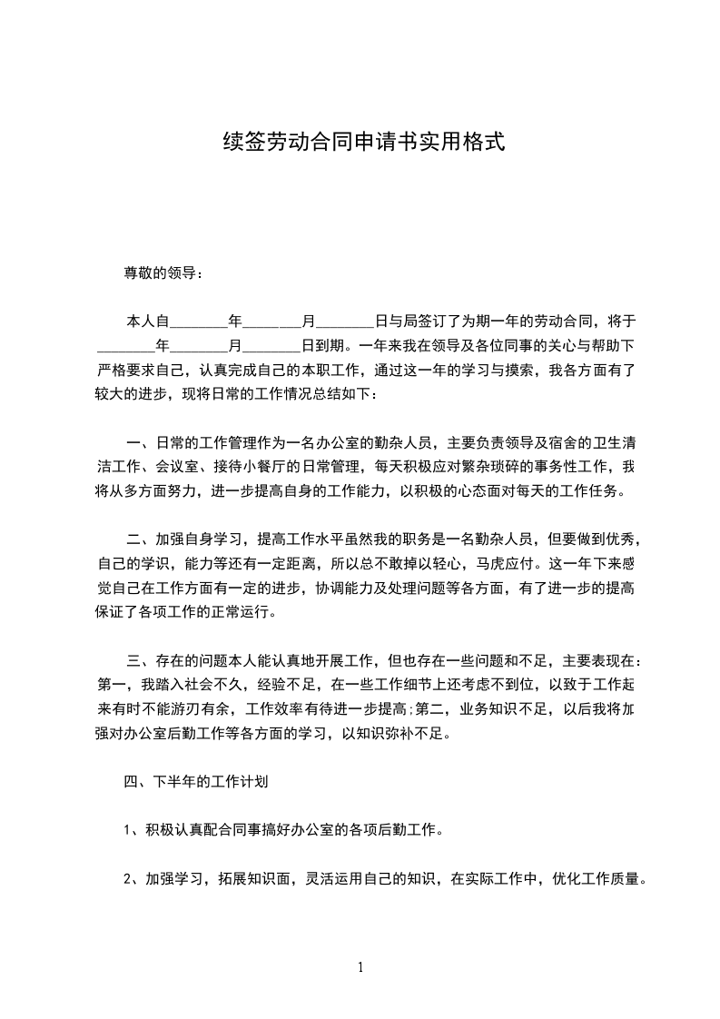 续签劳动合同申请书实用格式