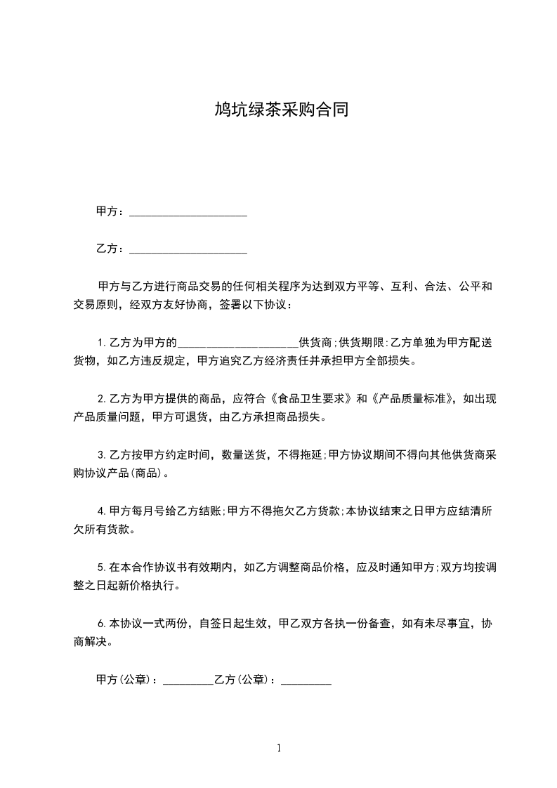 甲方与乙方进行商品交易的任何相关程序为达到双方平等、互利、合法、公平和交易原则,经双方友好协商,签署以下协议: