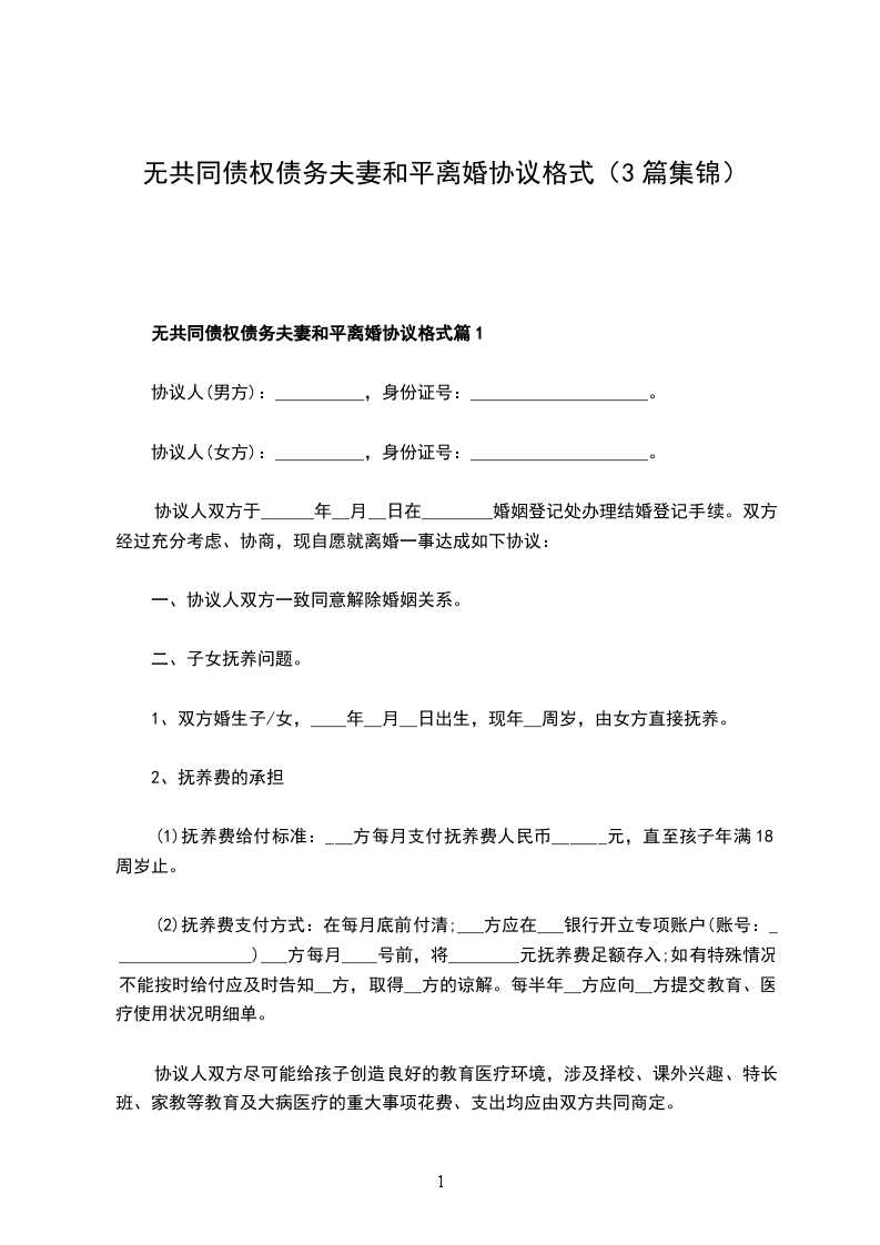 无共同债权债务夫妻和平协议离婚范本怎么拟篇3