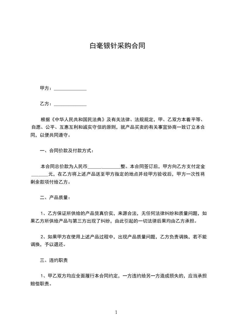 白针银毫销售合同