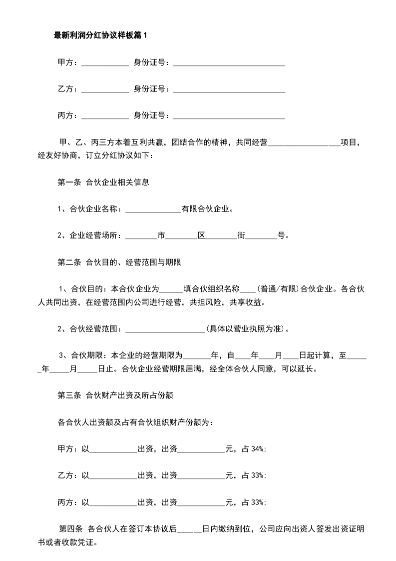 甲、乙、丙三方本着互利共赢,团结合作的精神,共同经营__________________项目,经友好协商,订立分红协议如下: