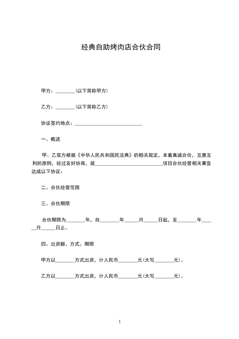 根据《中华人民共和国民法典》及其他有关法律、法规之规定,甲乙双方在平等、自愿、协商一致的基础上,就___________________________________合伙经营有关事宜达成如下协议: