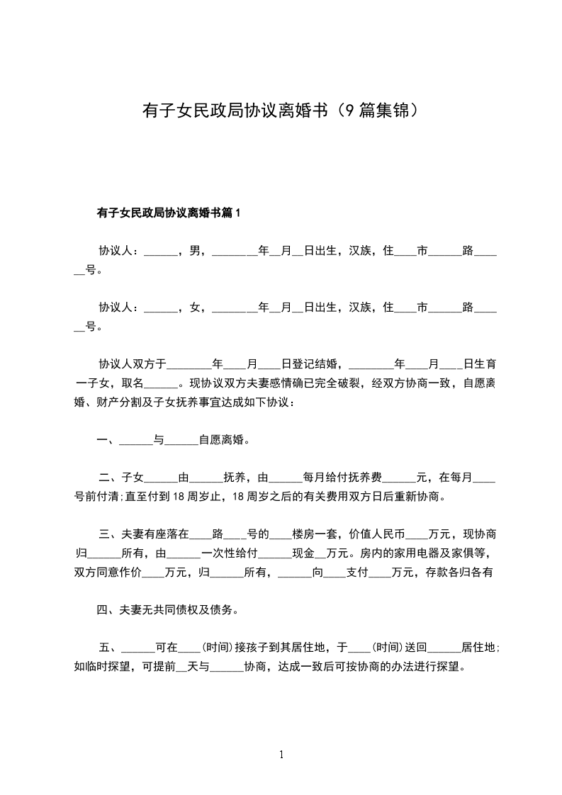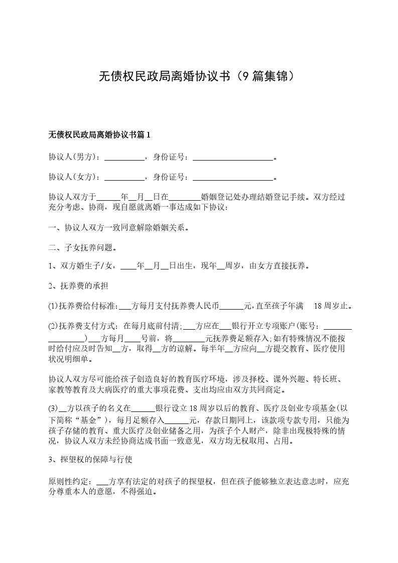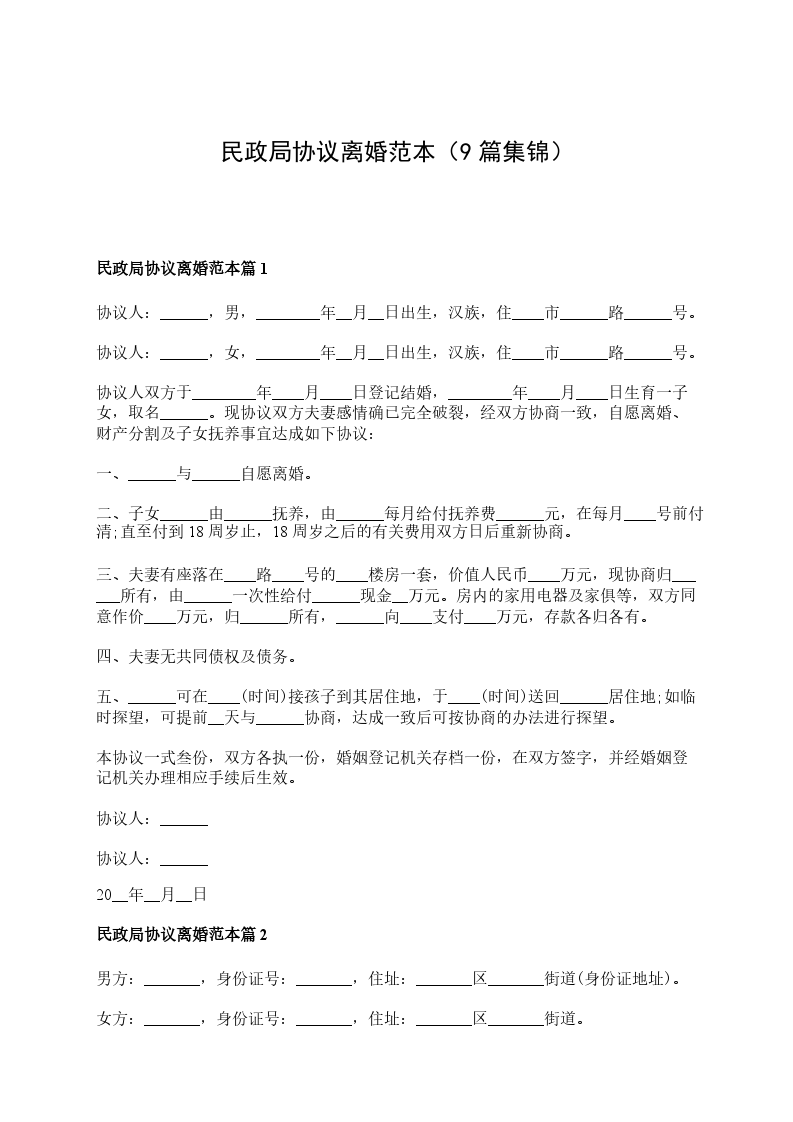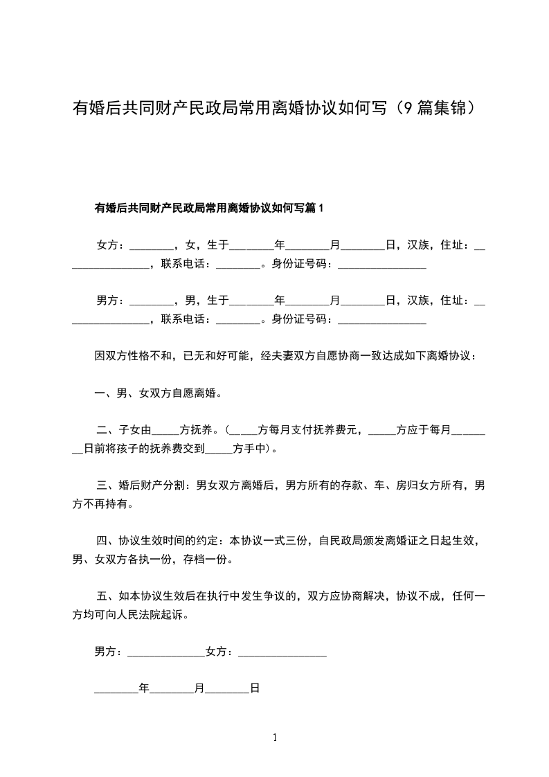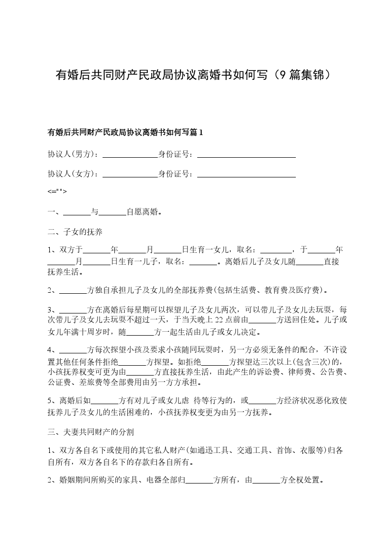 有婚后共同财产民政局常用协议离婚范本怎么写篇9