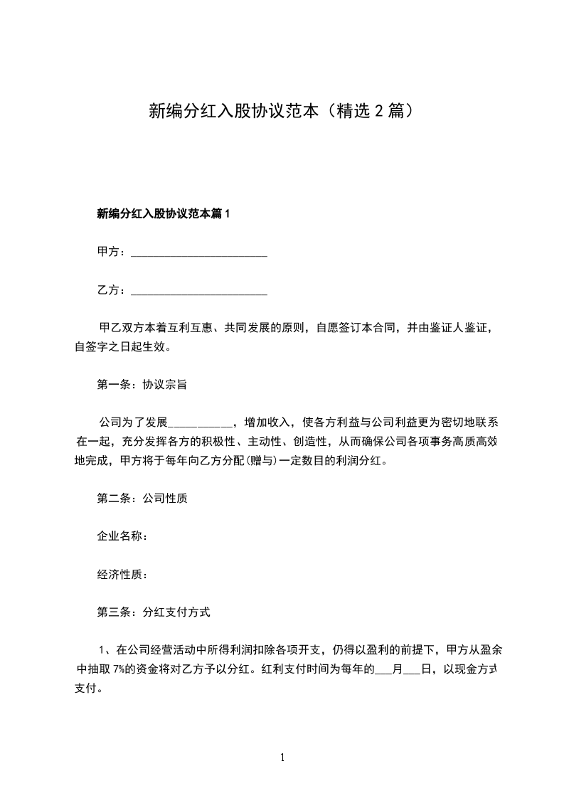 1、在公司经营活动中所得利润扣除各项开支,仍得以盈利的前提下,甲方从盈余中抽取7%的资金将对乙方予以分红。红利支付时间为每年的___月___日,以现金方式支付。
