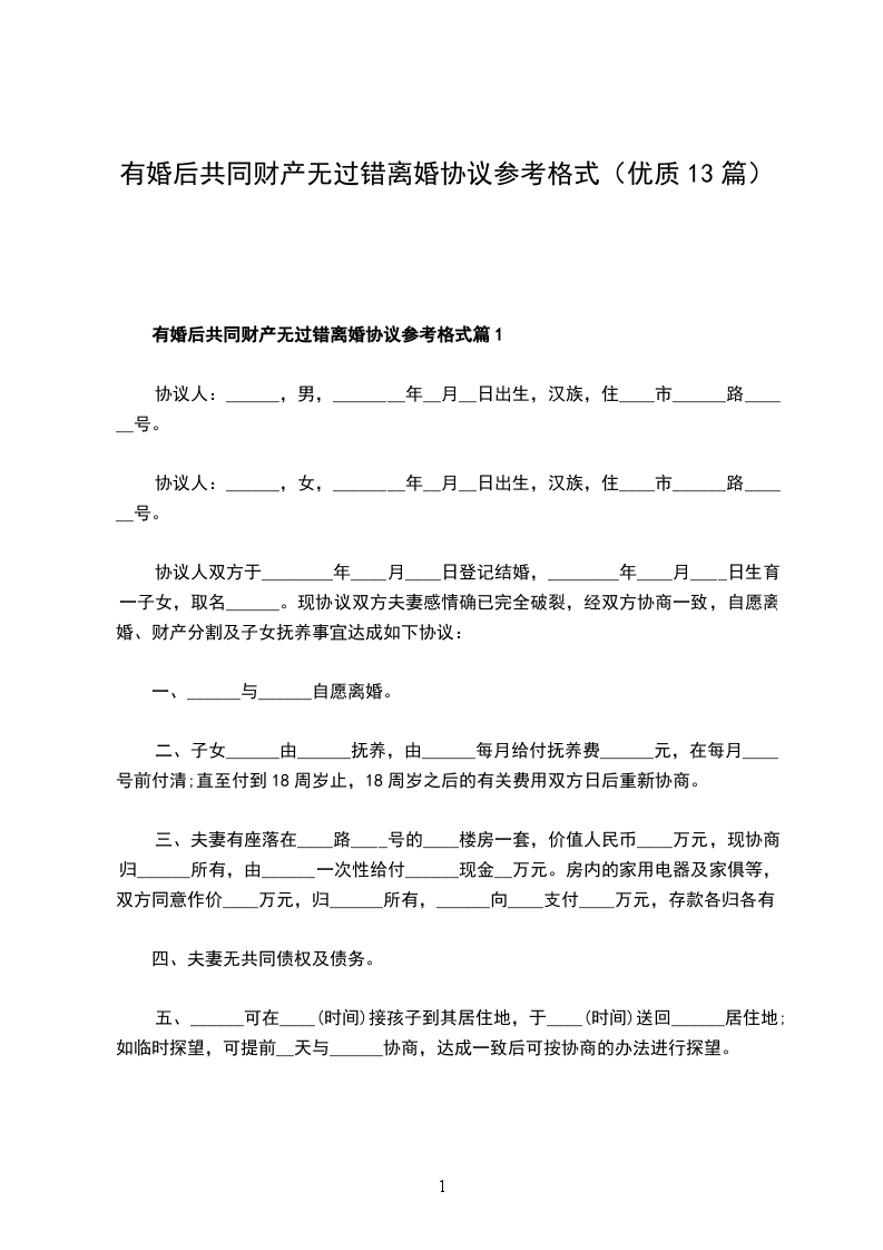 有婚后共同财产无过错协议离婚书怎么写篇13