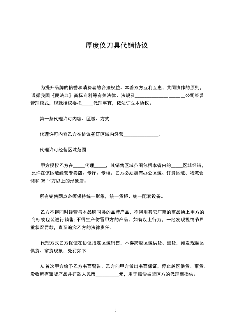 为规范甲、乙双方合作的运作流程,进一步明确甲、乙双方合作当事人的权利及义务,甲、乙双方就甲方委托乙方代为销售____________事宜,本着平等自愿、诚实守信、合法共赢、友好协商的原则,达成如下协议: