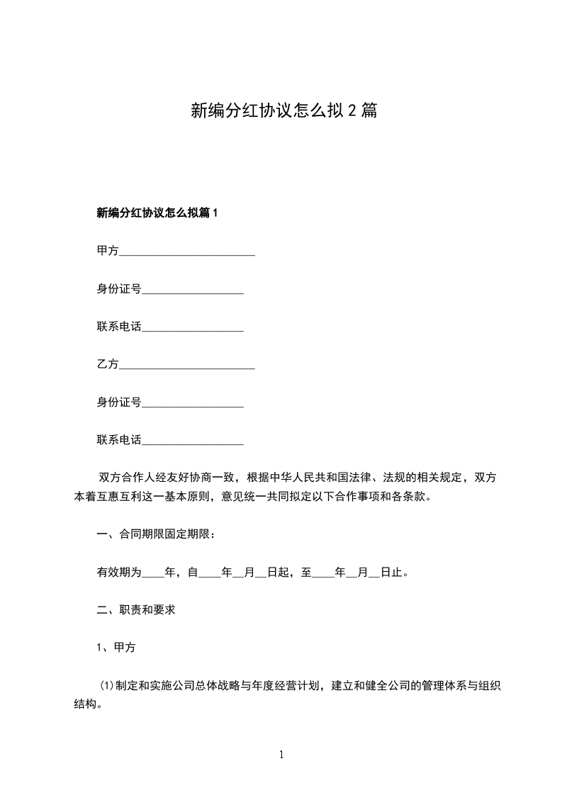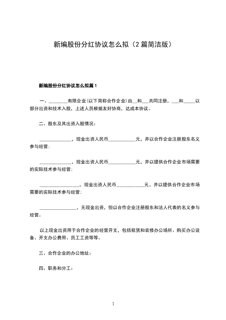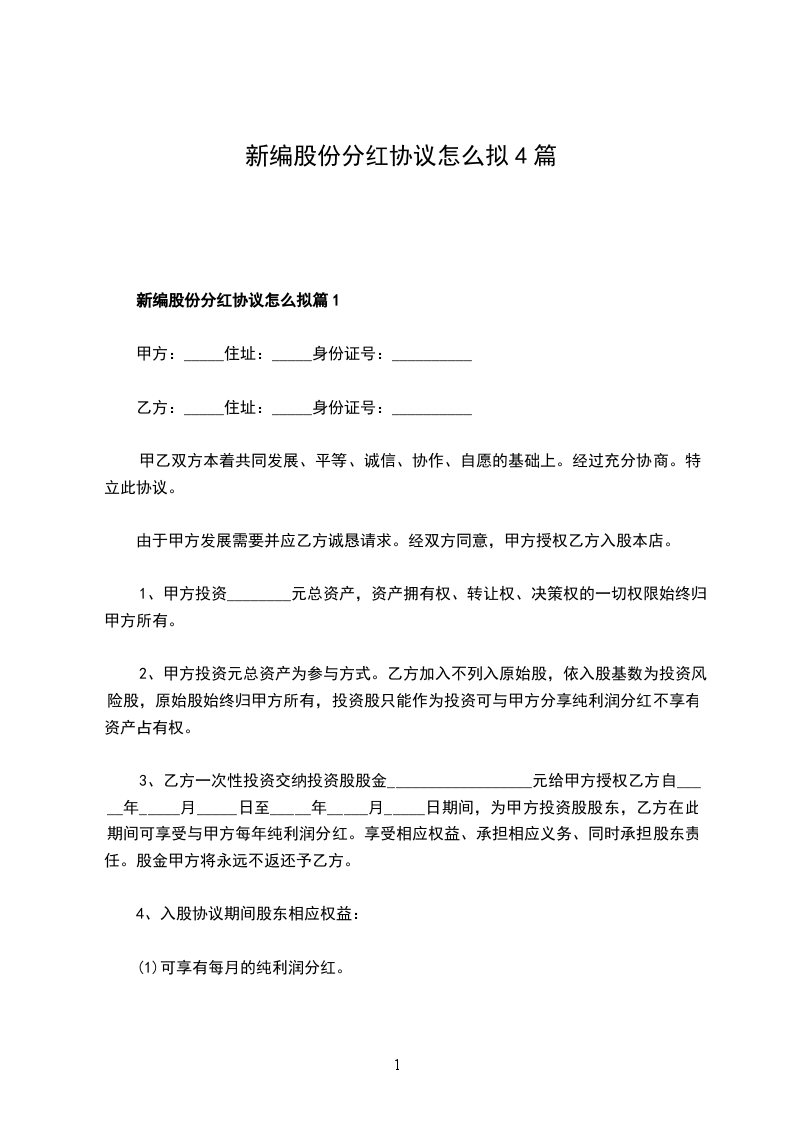 新编股份分红协议怎么拟篇2
