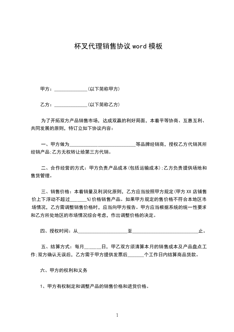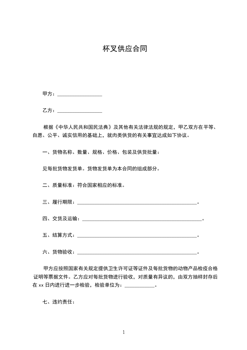 杯叉购销合同