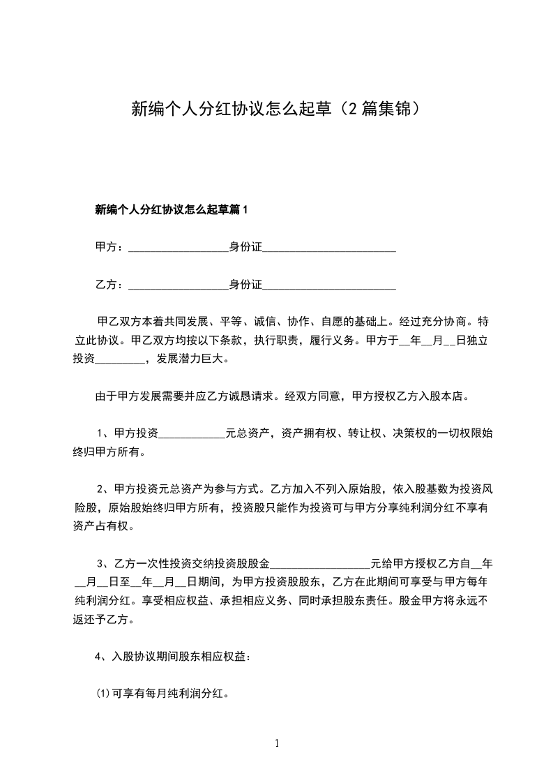 新编个人分红协议怎么起草篇1