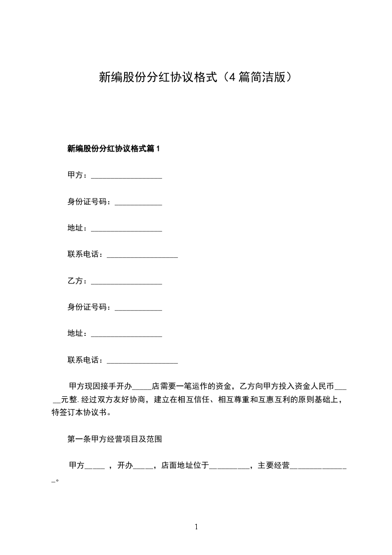新编股份分红协议范本篇1
