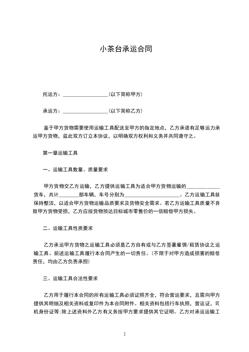 小茶台运输合同