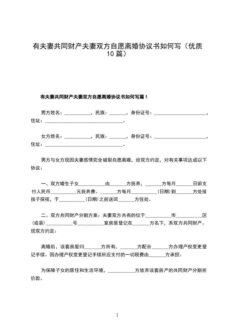 有夫妻共同财产夫妻双方自愿离婚协议书如何写篇10