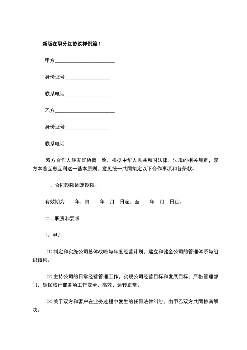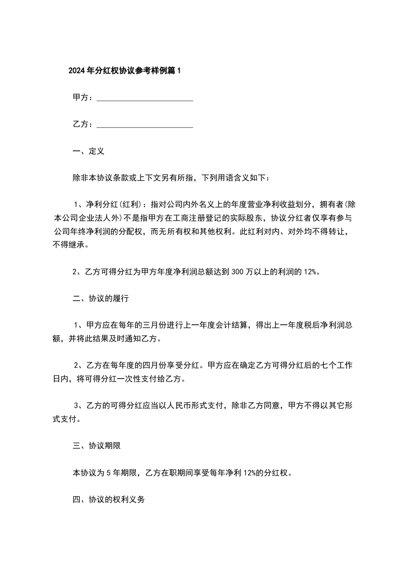 2024年分红权协议参考样例篇1