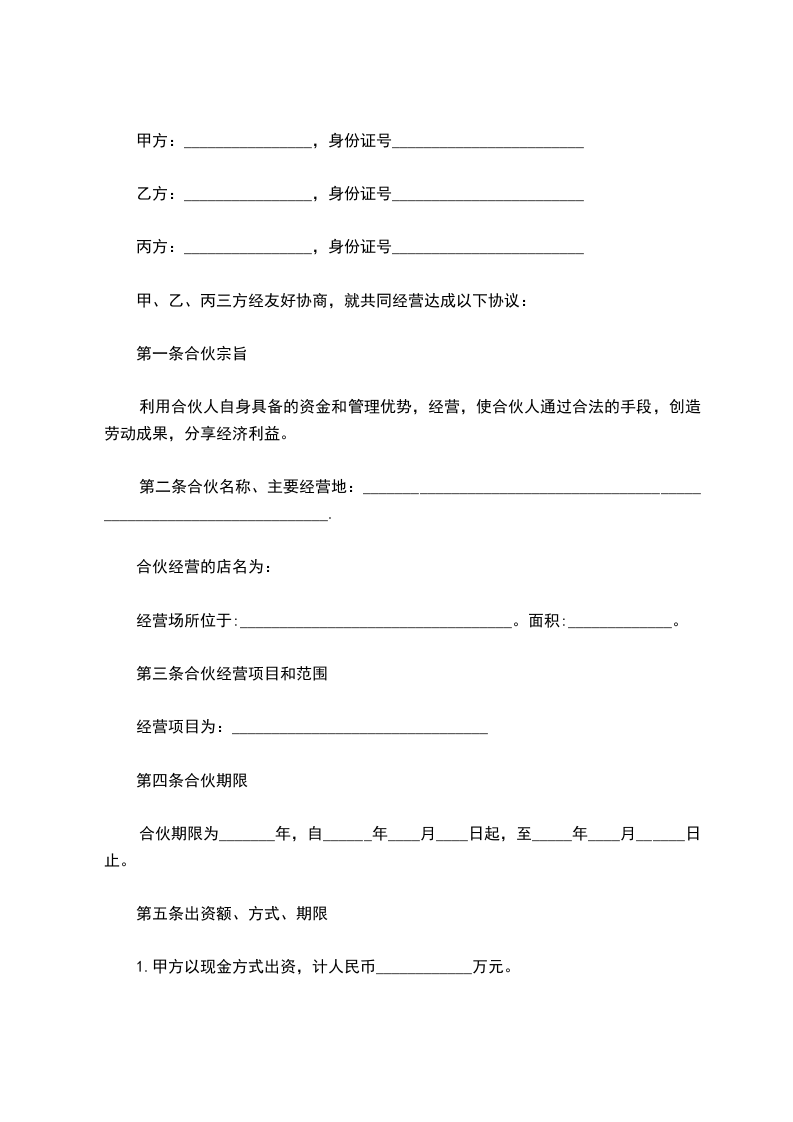 甲、乙、丙三方经友好协商,就共同经营达成以下协议: