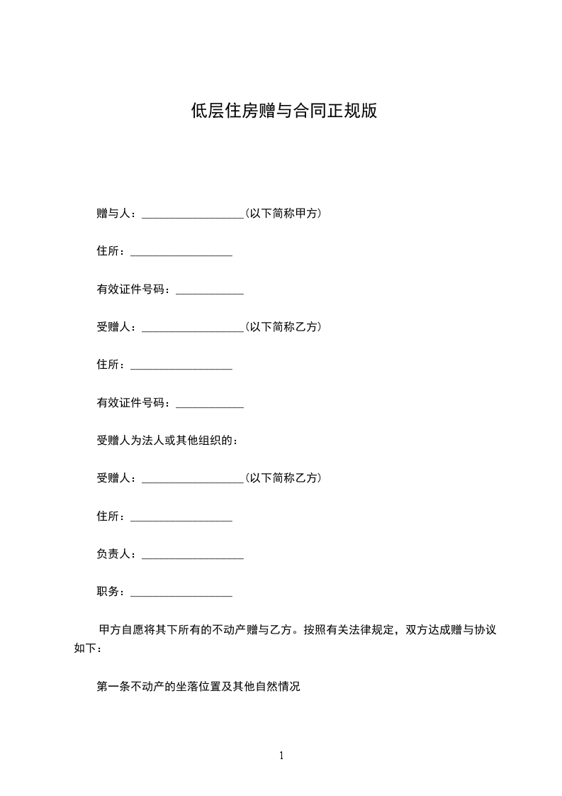 赠与人:__________________(以下简称甲方)