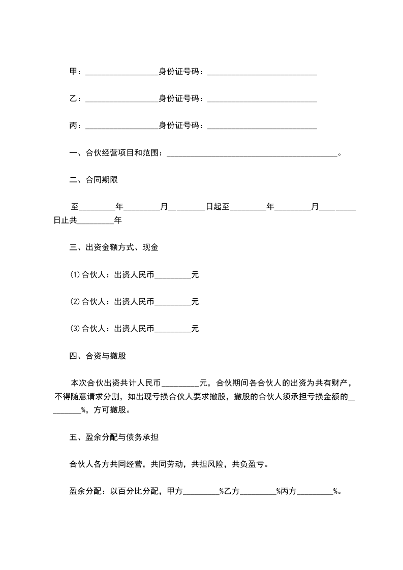 盈余分配:以百分比分配,甲方_________%乙方_________%丙方_________%。