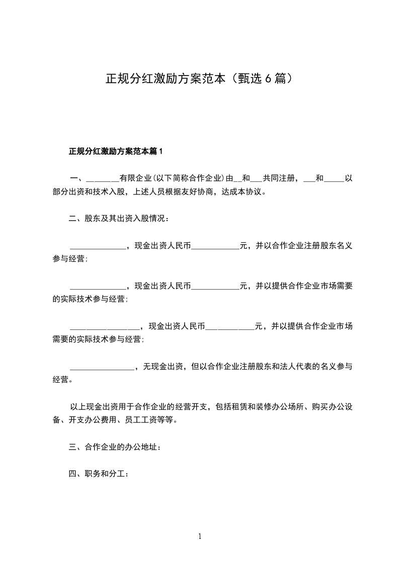 正规分红激励方案范本篇1