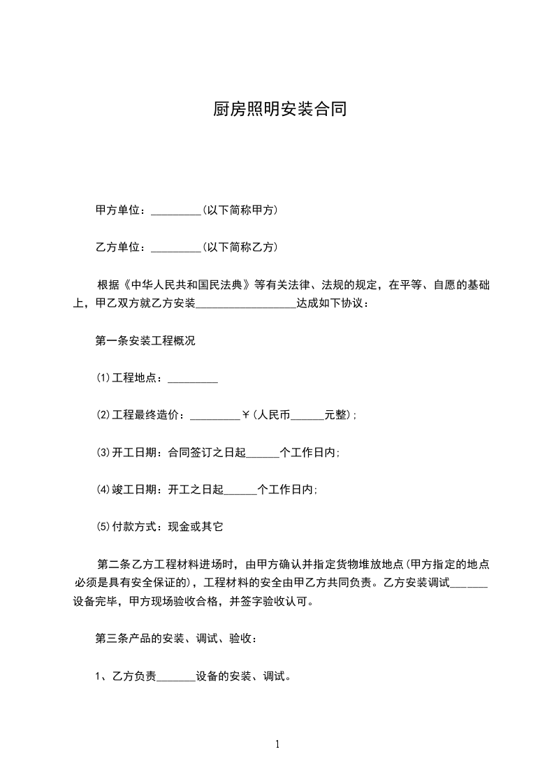 根据《中华人民共和国民法典》等有关法律、法规的规定,在平等、自愿的基础上,甲乙双方就乙方安装__________________达成如下协议: