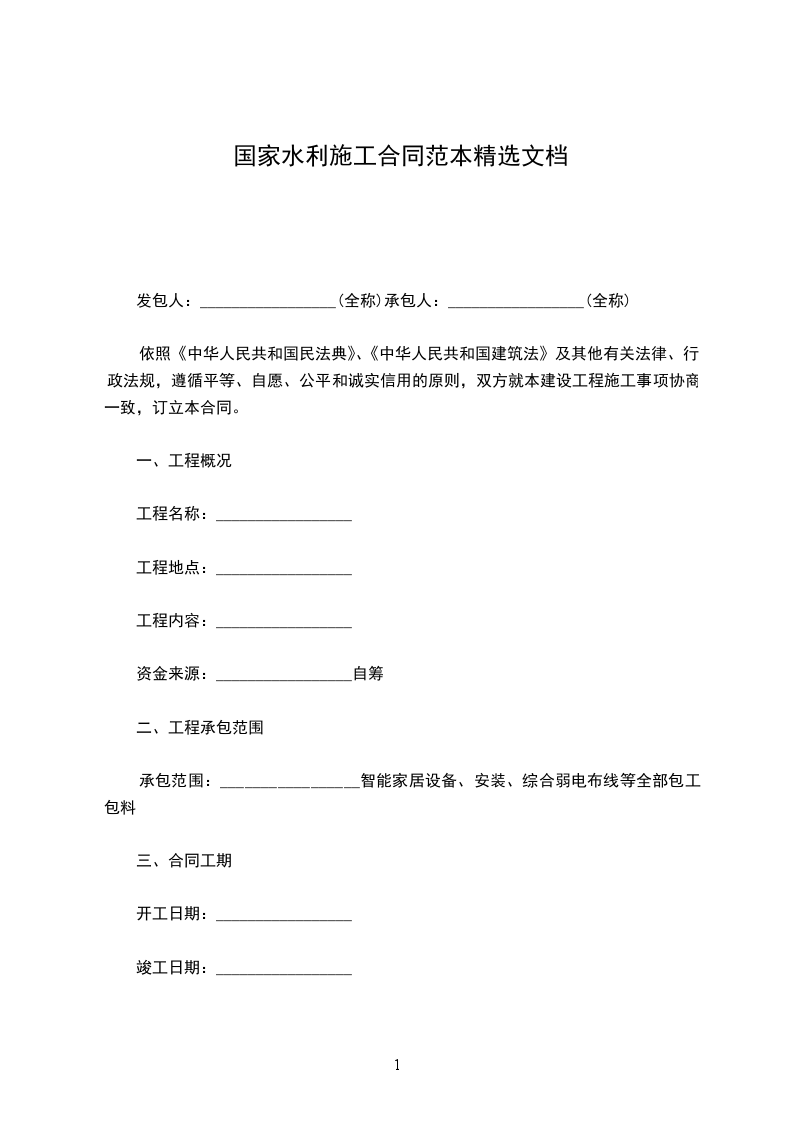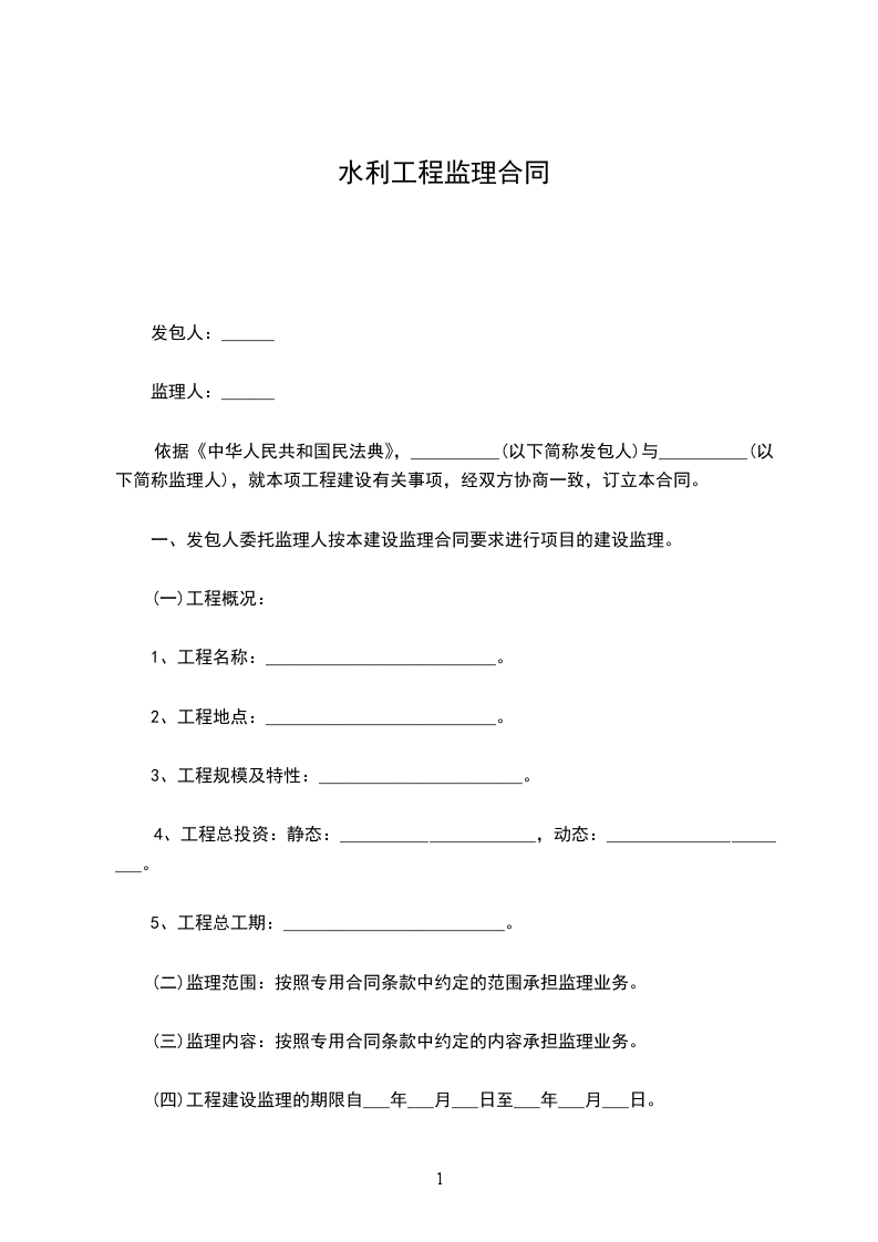 一、工程概况1工程名称:_2建设地点:_3工程等别(级):_4工程总投资(人民币,下同):_万元5工期:_