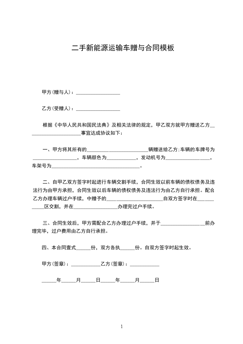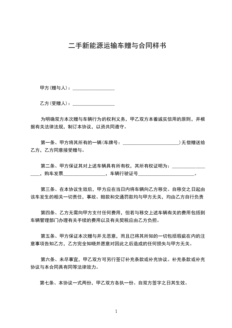 第一条甲方将其所有的______________牌汽车一辆(车牌号:____________________________)无偿赠送给乙方,乙方同意接受赠与。