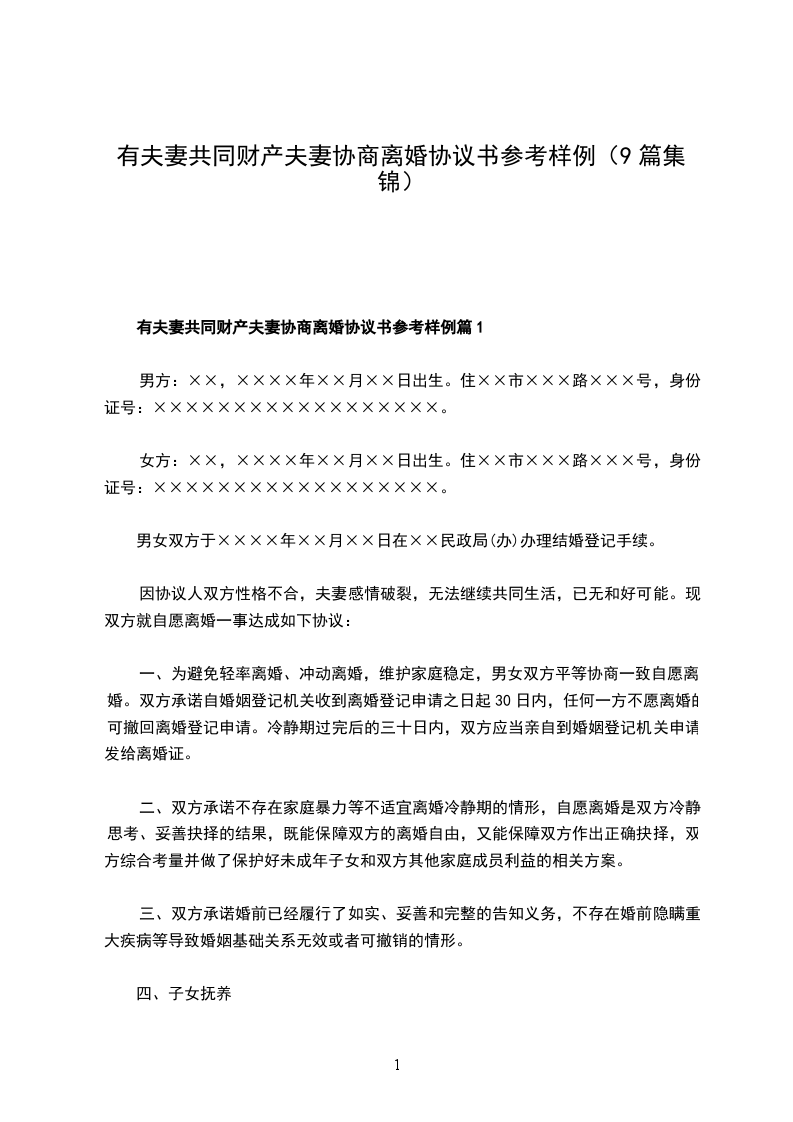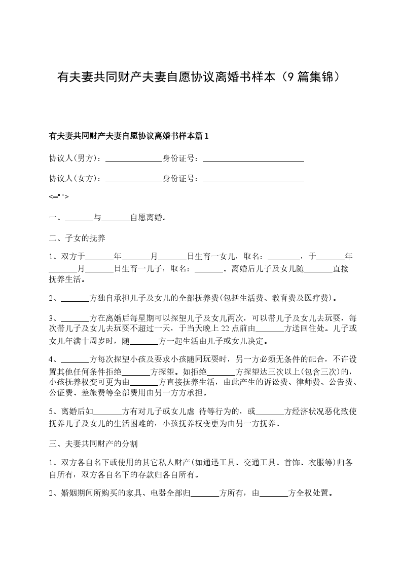 有夫妻共同财产夫妻协商离婚协议书参考样例篇9