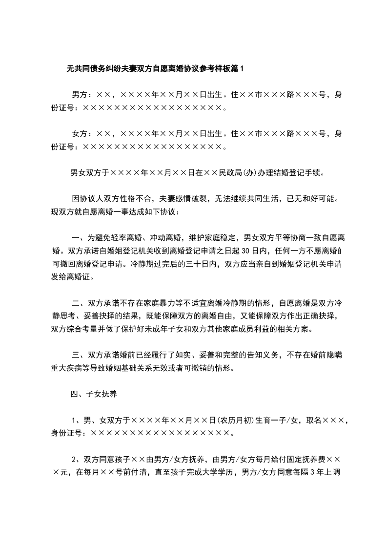无共同债务纠纷夫妻双方自愿离婚协议参考样板篇10