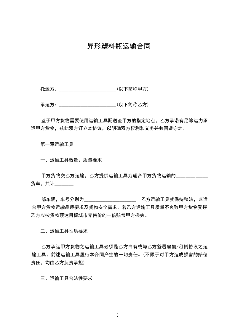 部车辆,车号分别为______________________。乙方运输工具就保持整洁,以适合甲方货物运输品质要求及货物安全需求。若乙方运输工具质量不良致甲方货物受损,乙方应按货物预达目标城市零售价的一倍赔偿甲方损失。