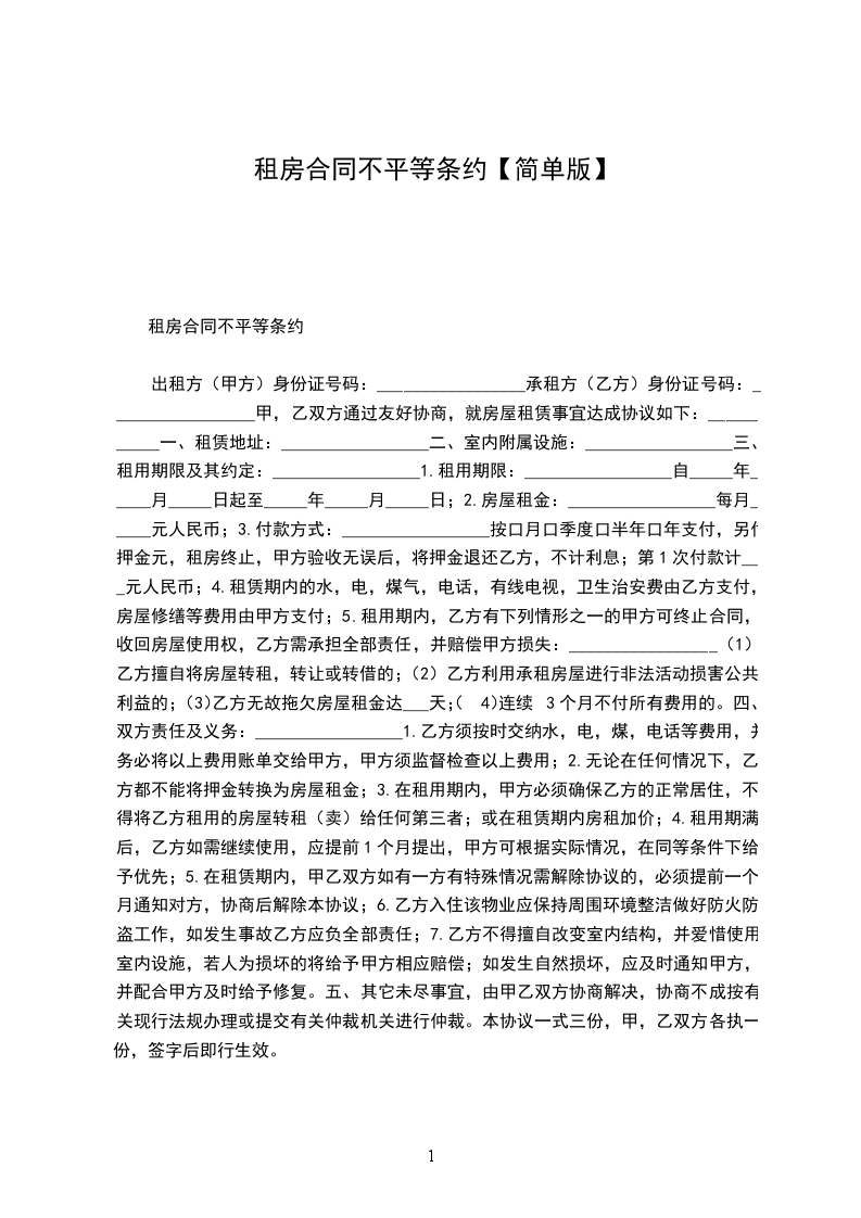 乙方:(男方):_______________,男,汉族,生于_____年__月__日,住________________________________