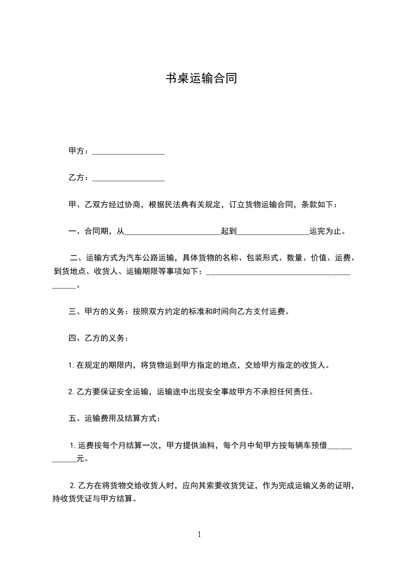 甲、乙双方经过协商,根据民法典有关规定,订立货物运输合同,条款如下:
