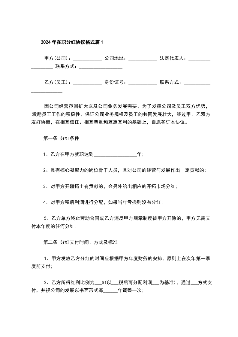 第一条 甲方承诺赠予给乙方的在职分红股(又称为虚拟股份),是指甲方在一定期限内让渡其部分在职分红股给乙方。只要在达到在职分红股赠予或分红条件时,即__________________管理有限公司满足一定条件,且同时乙方工作达到预期时,乙方享有按约定比例分享________________________管理有限公司红利的权利。从本质上讲,分红股激励属于企业股东采用附加条件赠予的方式,在一定期限内让渡部分剩余索取权,而非完整意义上的股权。