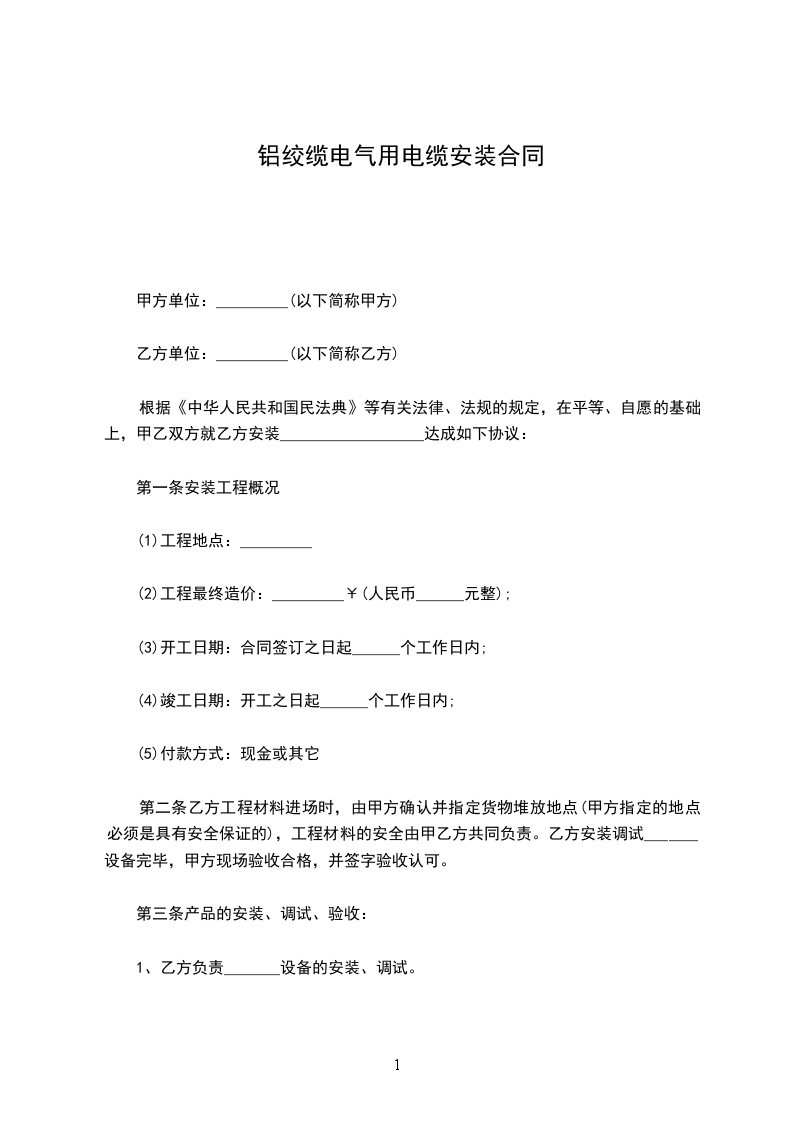 根据《中华人民共和国民法典》等有关法律、法规的规定,在平等、自愿的基础上,甲乙双方就乙方安装__________________达成如下协议:
