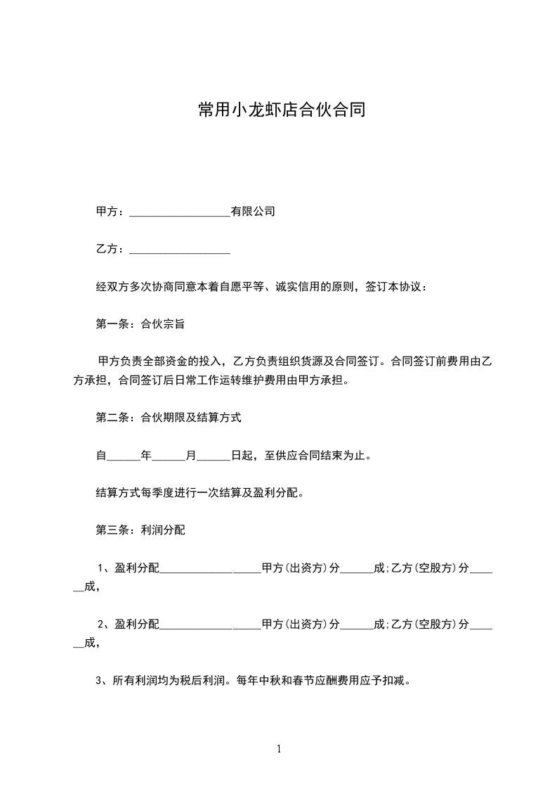 第一条:合伙宗旨