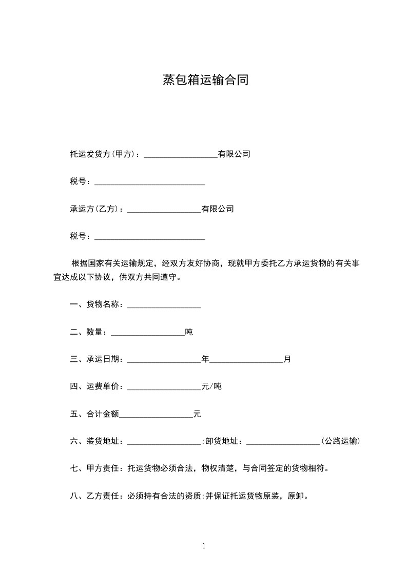八、乙方责任:必须持有合法的资质;并保证托运货物原装,原卸。