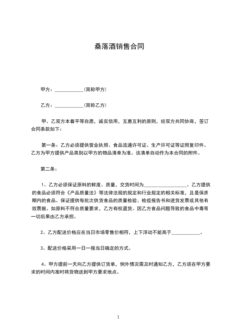 1、乙方必须保证原料的鲜度、质量,交货时间为__________________。乙方提供的食品必须符合《产品质量法》等法律法规的规定和行业规定的相关标准,且是保质期内的食品。保证提供每批次供货食品的质量检验、检疫报告书和进货发票或其他有效票据。如原料不符合质量要求,乙方有权退货。因乙方食品问题导致的食品中毒等一切后果由乙方承担。