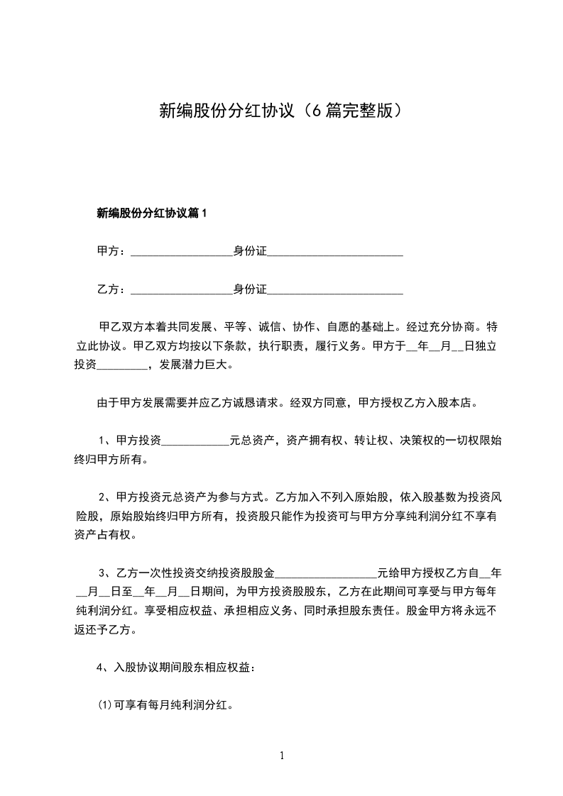 新编股份分红协议篇1