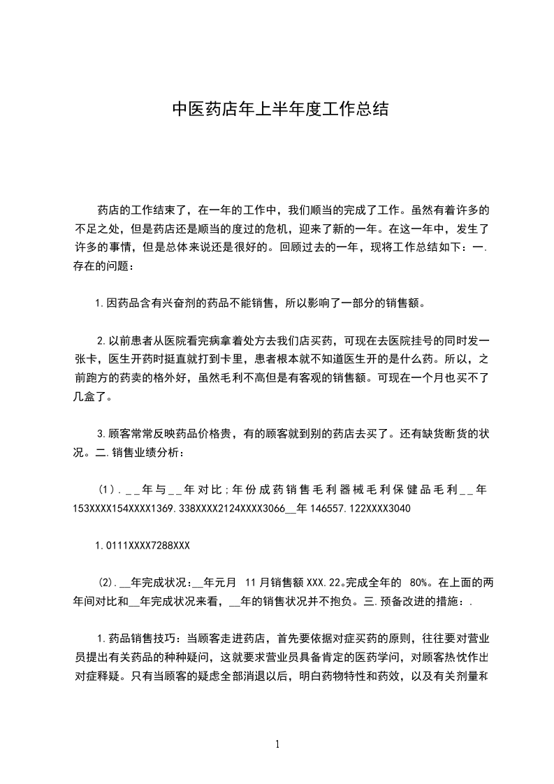 药店的工作结束了,在一年的工作中,我们顺当的完成了工作。虽然有着许多的不足之处,但是药店还是顺当的度过的危机,迎来了新的一年。在这一年中,发生了许多的事情,但是总体来说还是很好的。回顾过去的一年,现将工作总结如下:一.存在的问题: