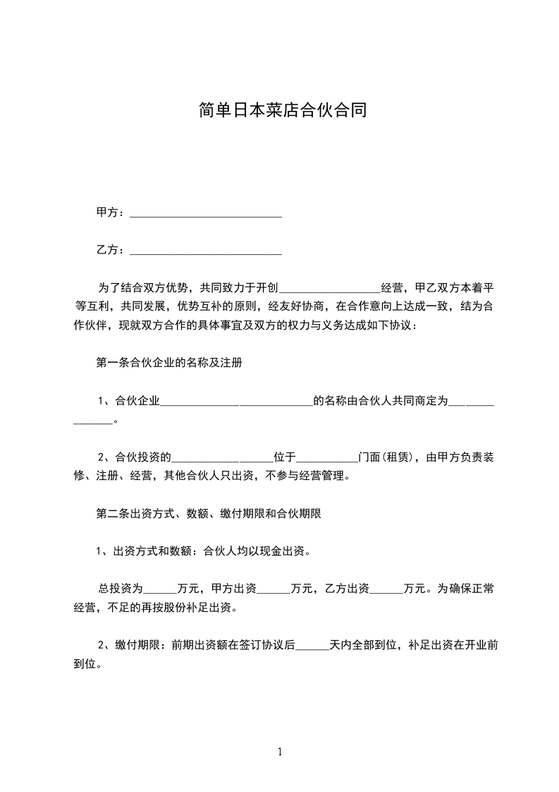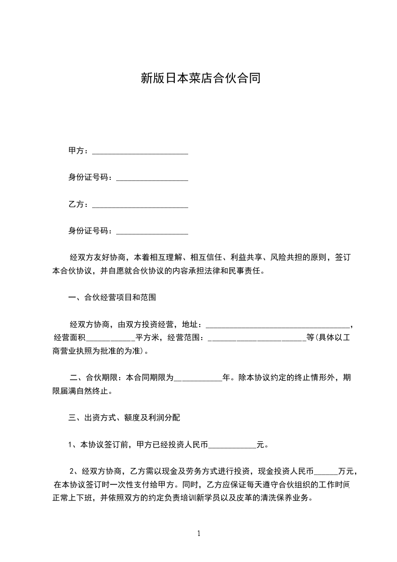 2、经双方协商,乙方需以现金及劳务方式进行投资,现金投资人民币______万元,在本协议签订时一次性支付给甲方。同时,乙方应保证每天遵守合伙组织的工作时间正常上下班,并依照双方的约定负责培训新学员以及皮革的清洗保养业务。