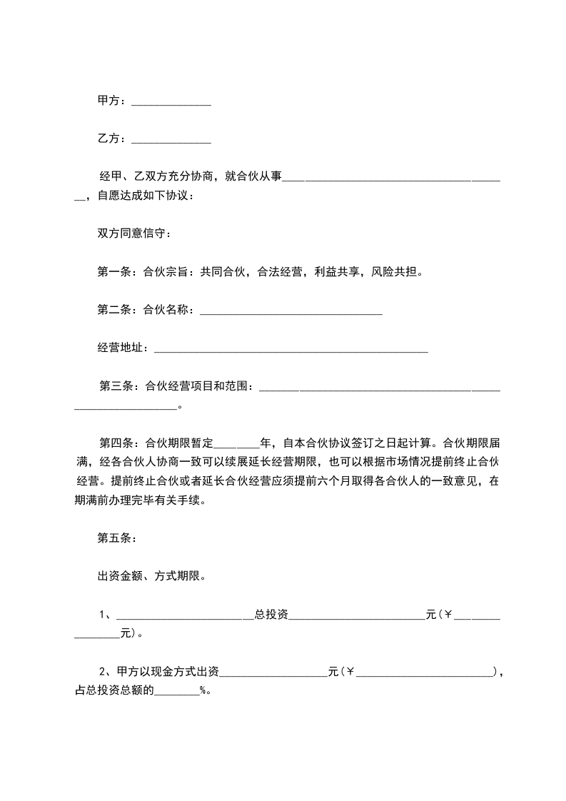 经甲、乙双方充分协商,就合伙从事________________________________________,自愿达成如下协议: