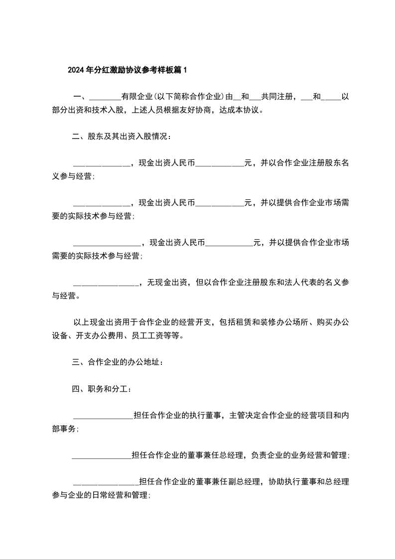 1.2分红:____________有限公司年终按照公司章程规定的可分配利润;